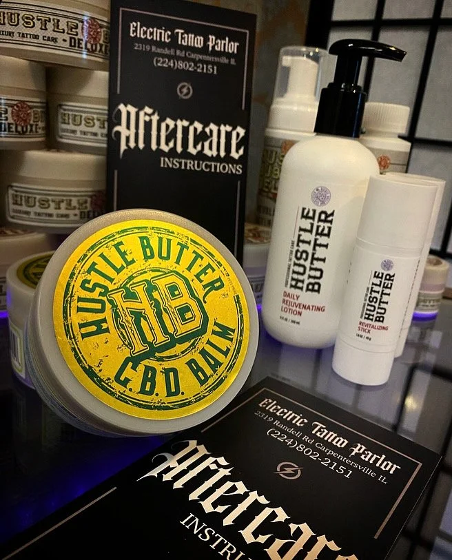 We recommend HustleButter after lotion. Other acceptable brands are Lubriderm, Curel, Jergens, etc. Do NOT use Aloe Vera or petroleum based products such as A&D.